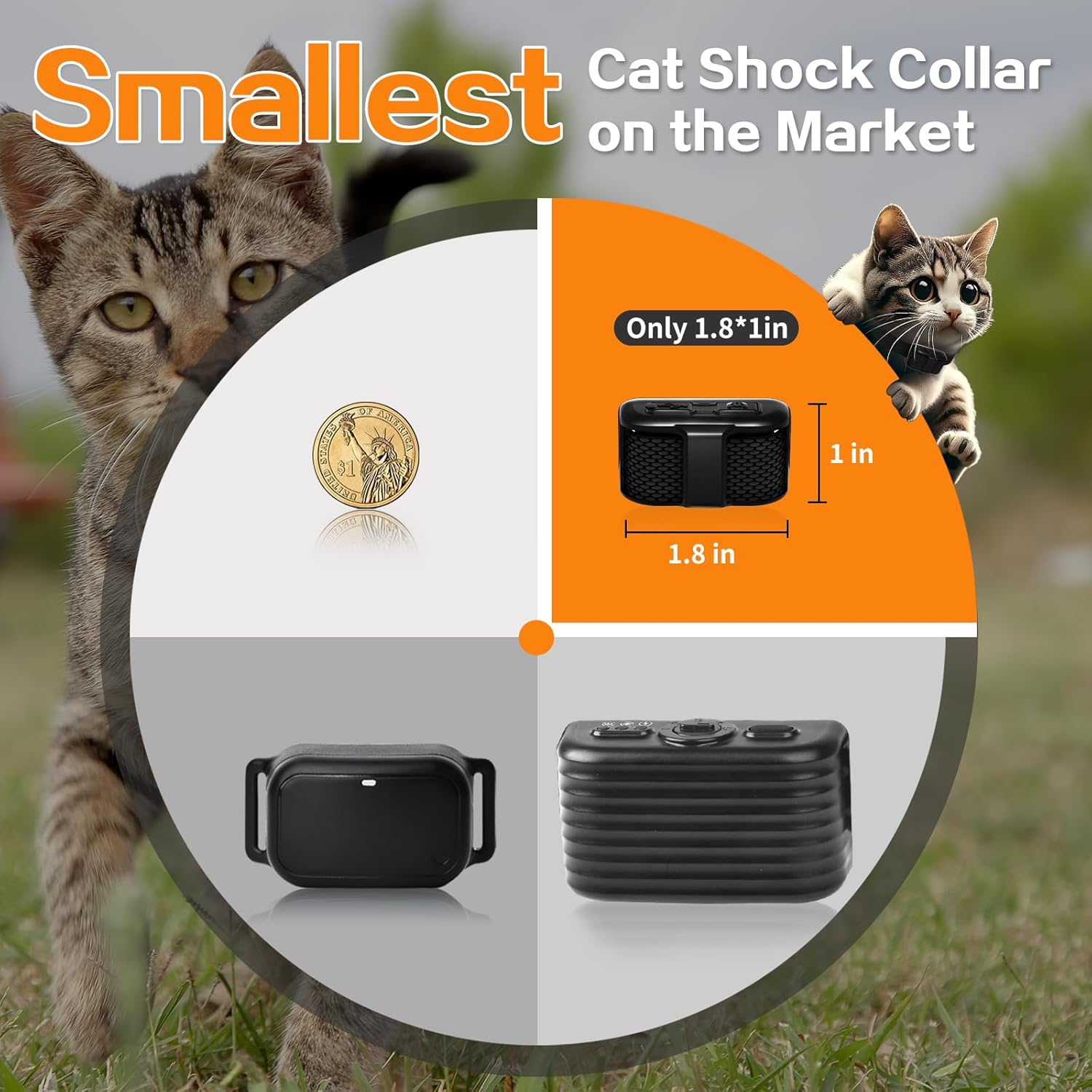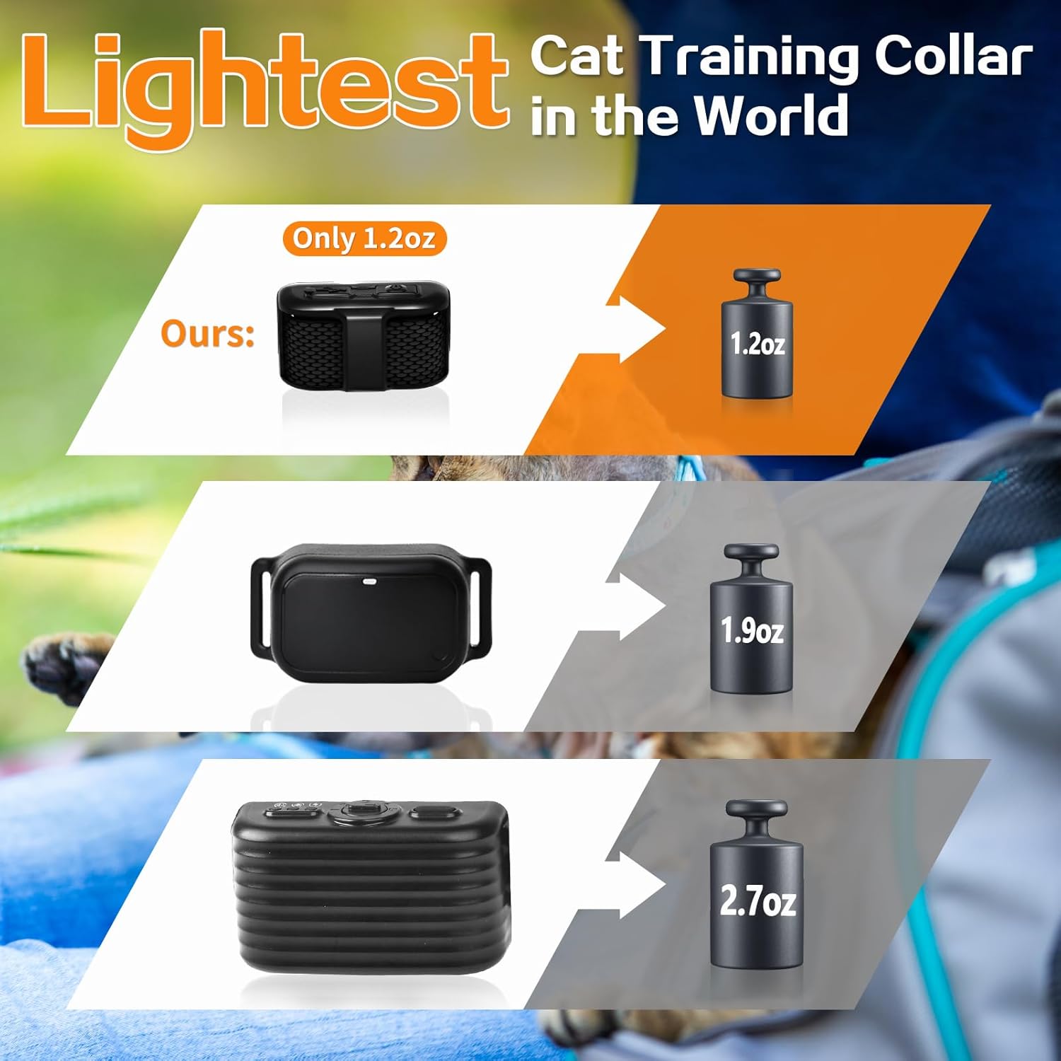 At just 1.8×1 inches and 1.2oz, this is the tiniest, lightest cat training collar ever — perfect for cats of all sizes.