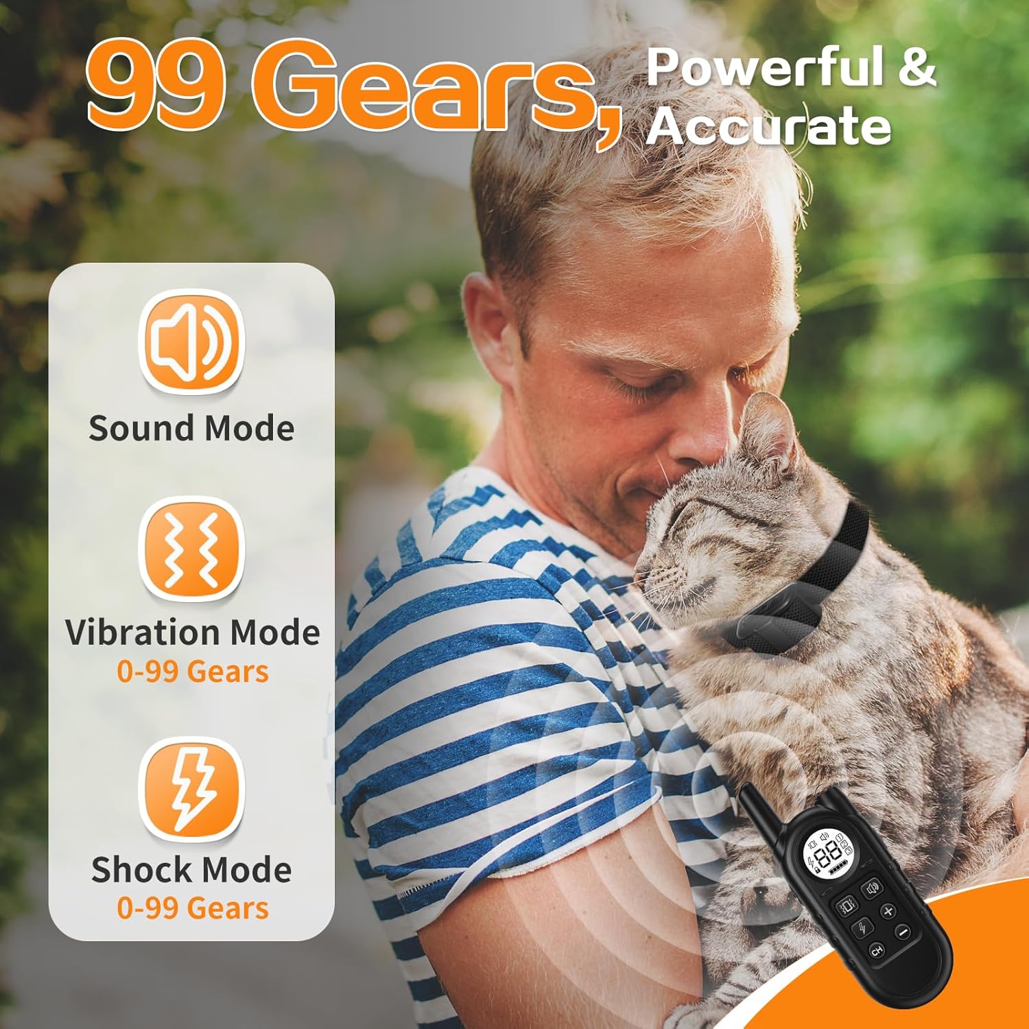 Sound, vibration, and safe shock (99 levels) let you tailor training to your cat’s behavior.